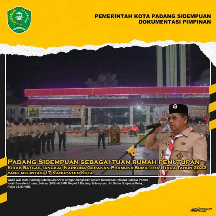 Padang Sidempuan sebagai tuan rumah penutupan Kirab Satgas tangkal Narkoba Gerakan Pramuka Sumatera Utara Tahun 2022 yang melintasi 17 Kabupaten Kota.
